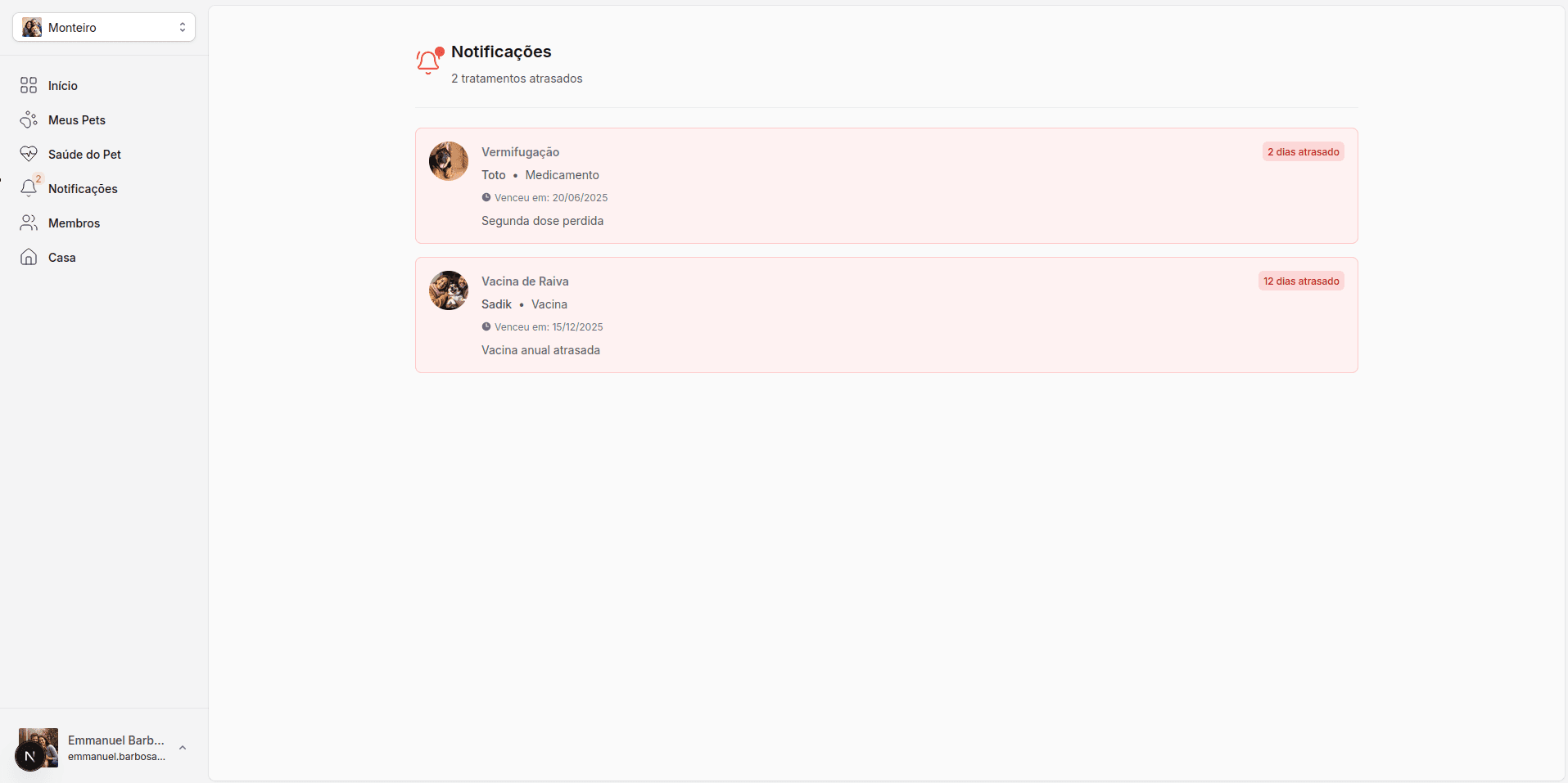 É hora de dar aos seus pets o cuidado que eles merecem. Nunca mais esqueça vacinas, medicamentos ou datas importantes da saúde dos seus companheiros.
