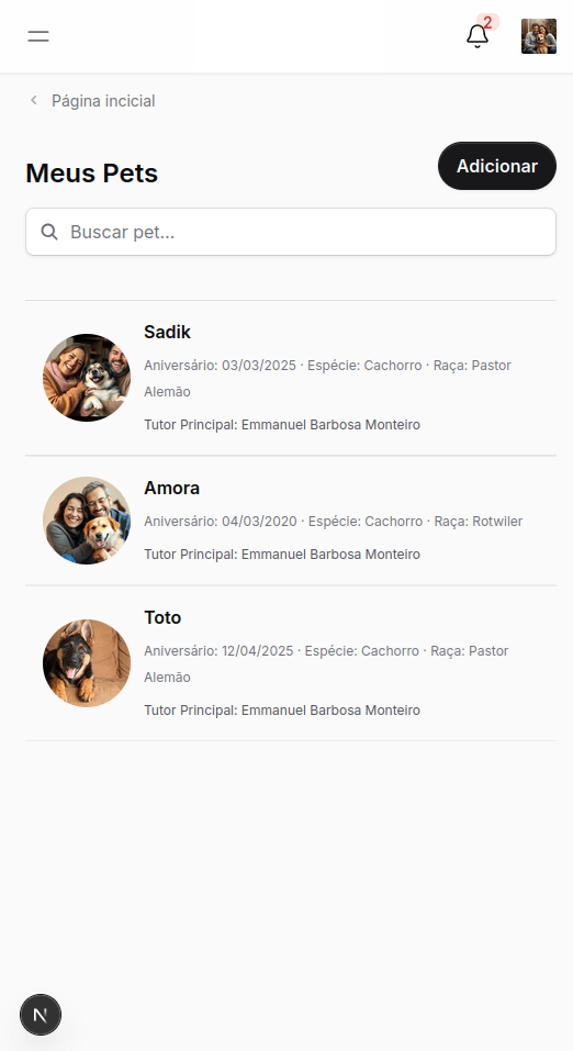 Administro um abrigo com 15 cães e a história do Pet é essencial para manter todos os tratamentos em dia. Economizamos muito tempo!
